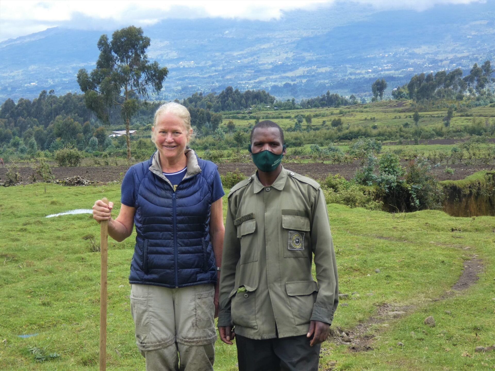 We navigate a range of ecosystems–low tunnels of curved bamboo, open hills of vegetation where we could see buffalo, trees with golden monkeys and slippery slopes, thankful for the walking stick. The air, sights, sounds and experience are wonderful.